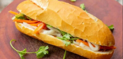 Pork BBQ baguette – A warm, crusty Vietnamese baguette loaded with smoky, marinated grilled pork, pickled vegetables, cucumber, cilantro, and a flavorful house-made sauce. A perfect blend of savory, fresh, and aromatic Vietnamese flavors.